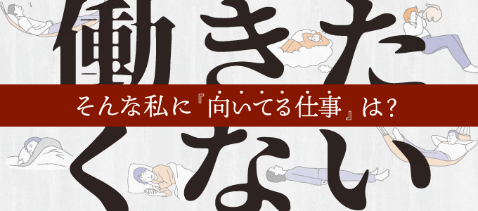 社内のSEO担当者より必ず入れたいテキストの指定をもらい作成に取り掛かりました。「働きたくない」という強めのワード・書体とバランスを取るために、イラストは緩い感じのものを選択しました。